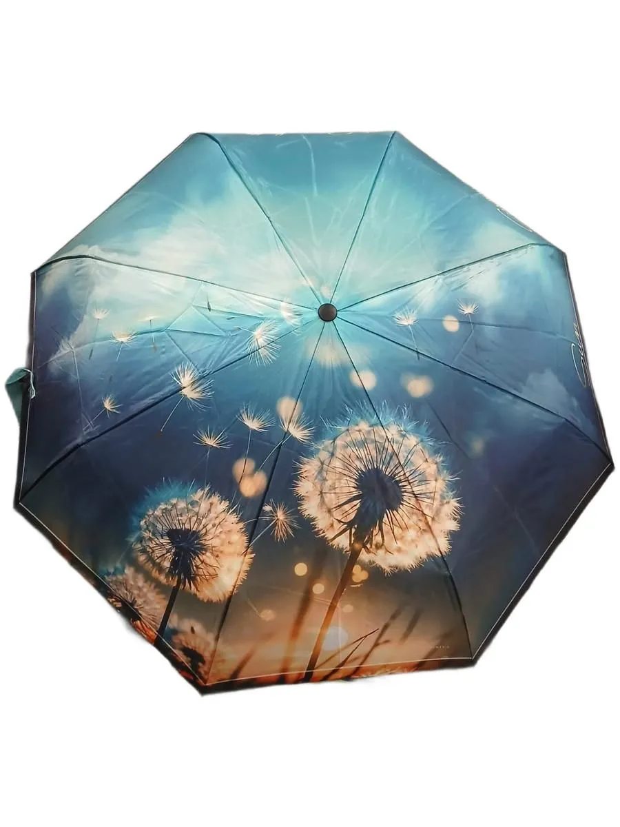 Элегантный женский зонт с автоматическим механизмом открывается одним нажатием, обеспечивая комфорт даже в спешке. Его оригинальный рисунок пушистого одуванчика добавляет образу свежести и романтики.