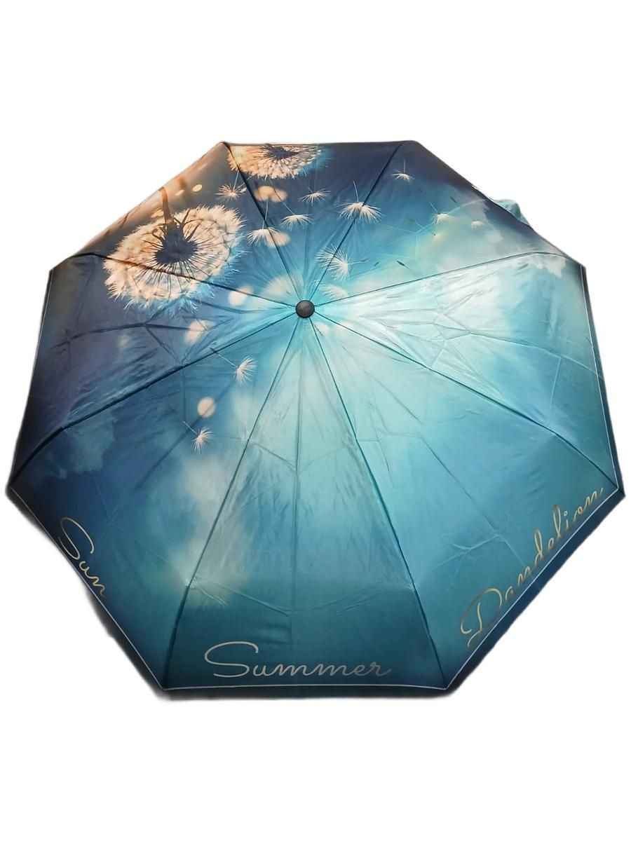 Оригинальный рисунок пушистого одуванчика на куполе зонта добавляет образу свежести и романтики, делая его стильным акцентом.