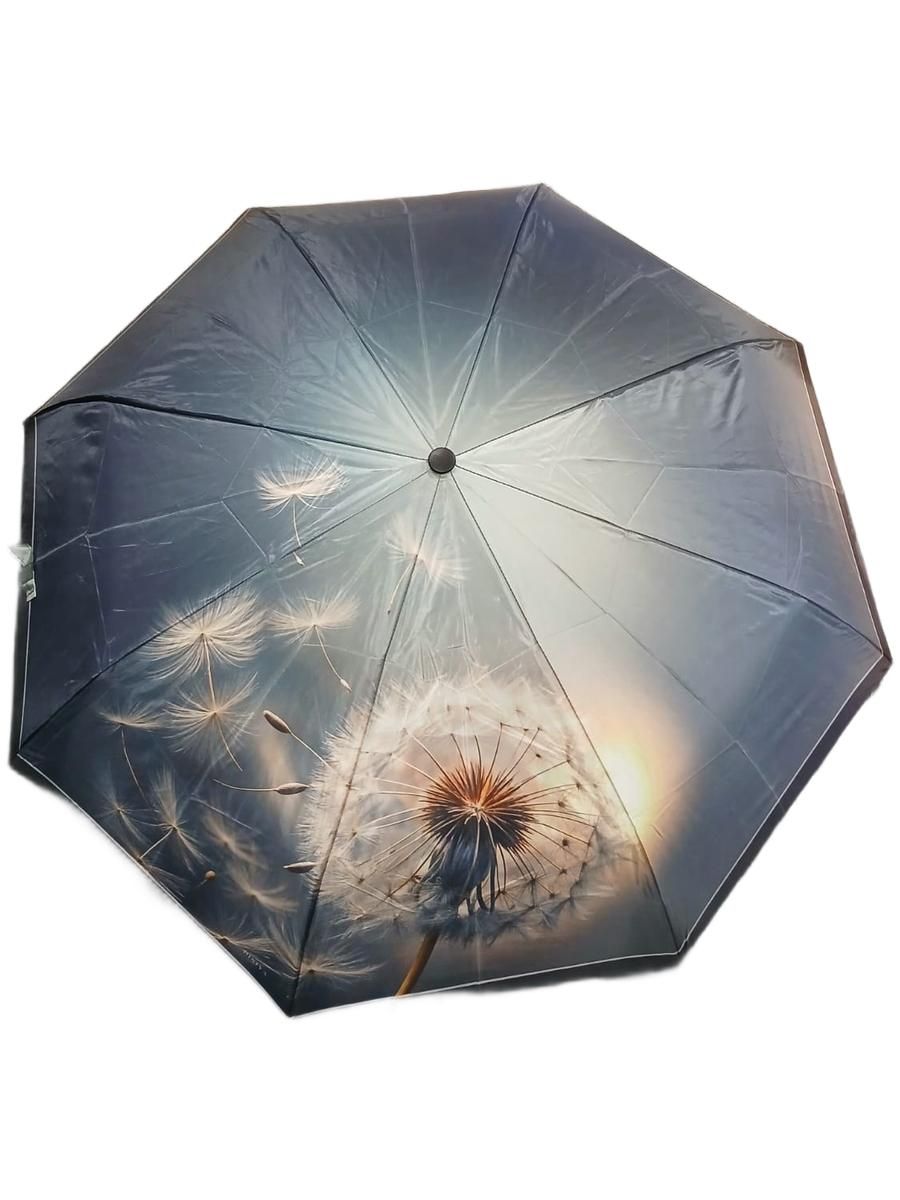 Оригинальный рисунок пушистого одуванчика на куполе зонта добавляет образу свежести и романтики, делая его стильным акцентом.