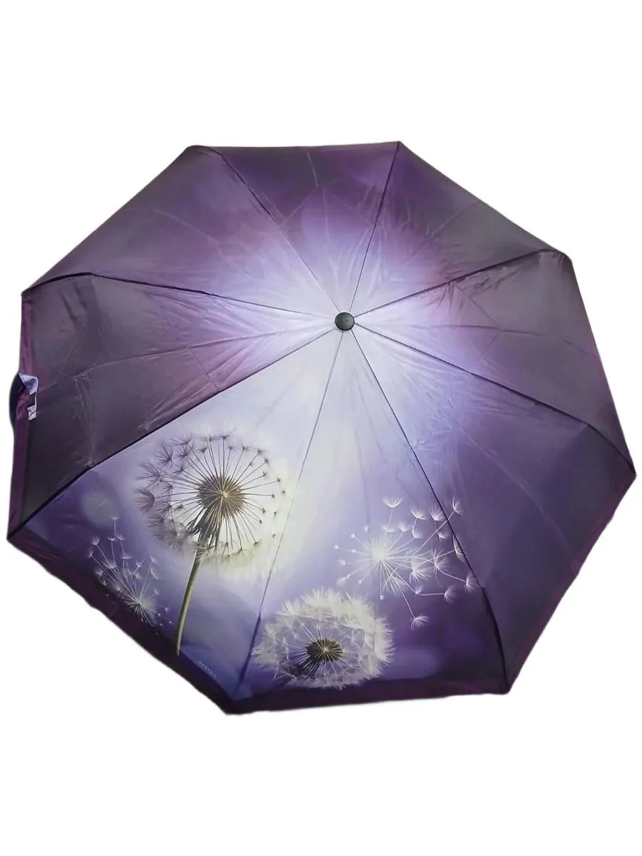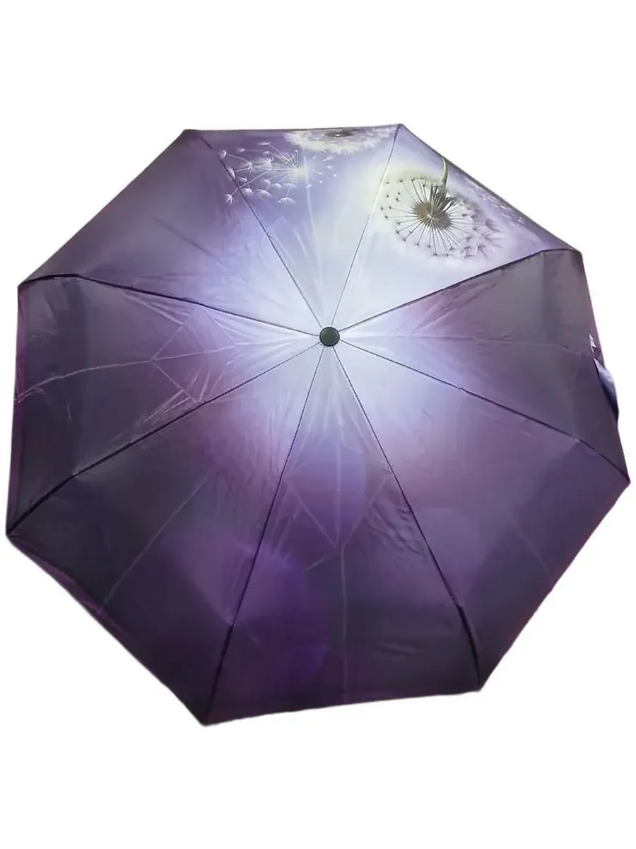 Элегантный женский зонт с автоматическим механизмом открывается одним нажатием, обеспечивая комфорт даже в спешке. Его оригинальный рисунок пушистого одуванчика добавляет образу свежести и романтики.