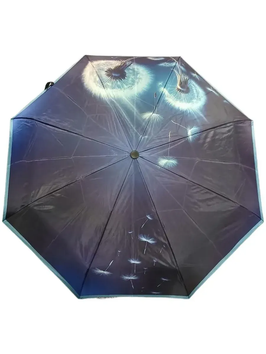 Элегантный женский зонт с автоматическим механизмом открывается одним нажатием, обеспечивая комфорт даже в спешке. Его оригинальный рисунок пушистого одуванчика добавляет образу свежести и романтики.